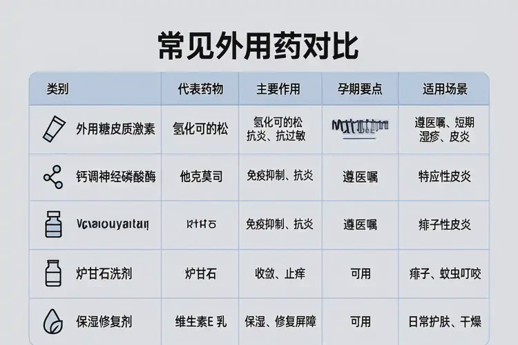 - 孕早期:优先非药物与局部对症处理;如需药物,倾向外用低效力激素与炉甘石等;必要时在医生指导下短期口服抗组胺药。