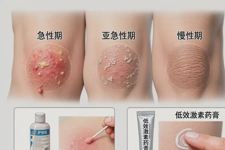 - 外用药物:在医生指导下,急性期/渗出期可选炉甘石洗剂、氧化锌软膏;炎症与瘙痒明显时,短期、薄涂低效糖皮质激素(如氢化可的松软膏)以控炎止痒;亚急性期/慢性期可在医嘱下选用糠酸莫米松乳膏、丁酸氢化可的松乳膏等,注意部位与疗程。
