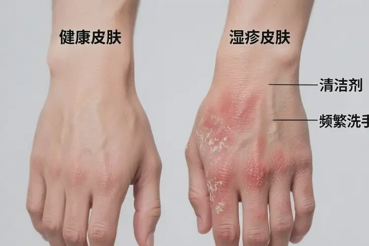 | 主要诱因 | 短期接触清洁剂、频繁洗手、季节干燥 | 长期职业暴露、持续刺激/过敏、皮肤屏障受损 |